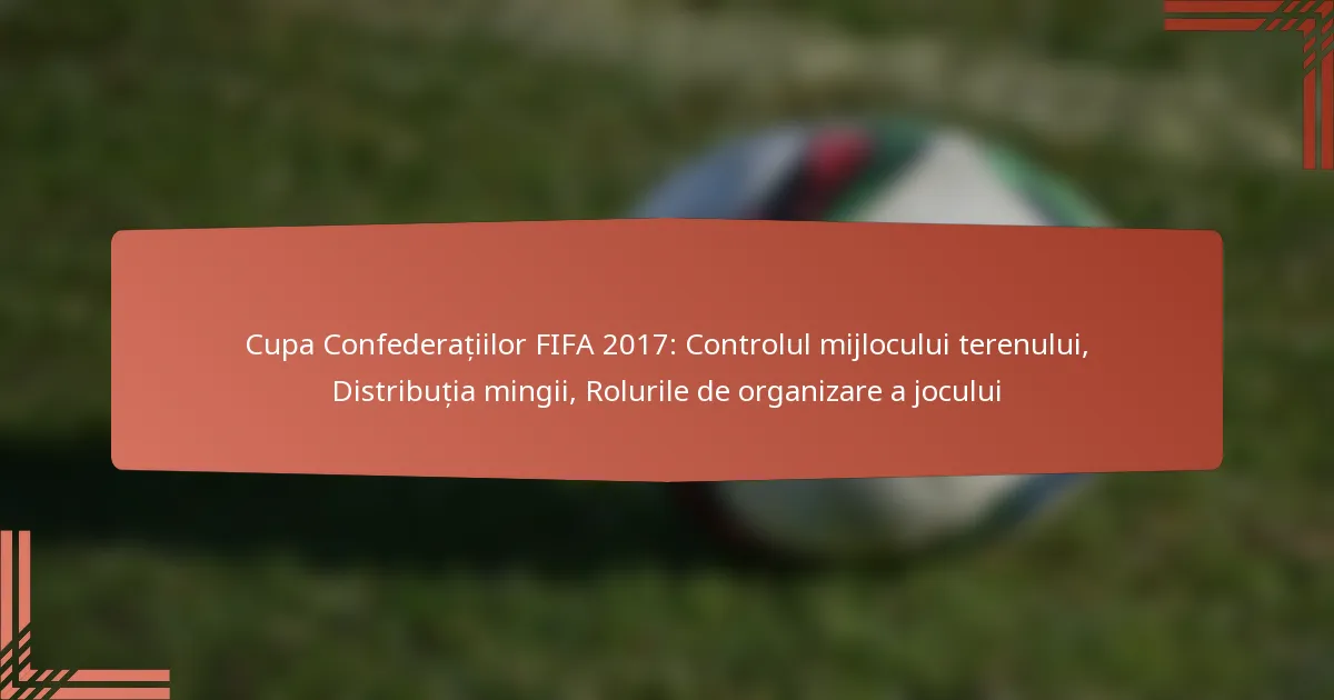 Cu ocazia Cupei Confederațiilor FIFA 2017, s-a evidențiat importanța critică a controlului din mijlocul terenului, unde echipele au avut ca obiectiv să domine zona centrală a terenului pentru o distribuție eficientă a mingii și crearea de ocazii de joc. Această concentrare strategică a permis echipelor să dicteze ritmul jocului și să creeze oportunități de gol prin diverse tehnici de pase și procese de luare a deciziilor. Creatorii de joc au jucat un rol esențial în legarea apărării și atacului, influențând semnificativ performanța generală a echipei prin controlul tempo-ului și fluxului meciului.