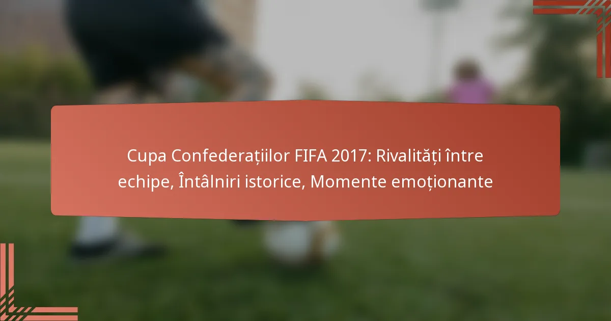 Cupa Confederațiilor FIFA 2017 a fost o vitrină palpitantă a rivalităților intense dintre echipe, adânc înrădăcinate în întâlniri istorice și confruntări anterioare din Cupa Mondială. Națiuni precum Germania, Chile și Australia s-au confruntat în ciocniri memorabile care nu doar că au evidențiat spiritul lor competitiv, dar au creat și momente emoționante care au rezonat atât cu fanii, cât și cu jucătorii.
